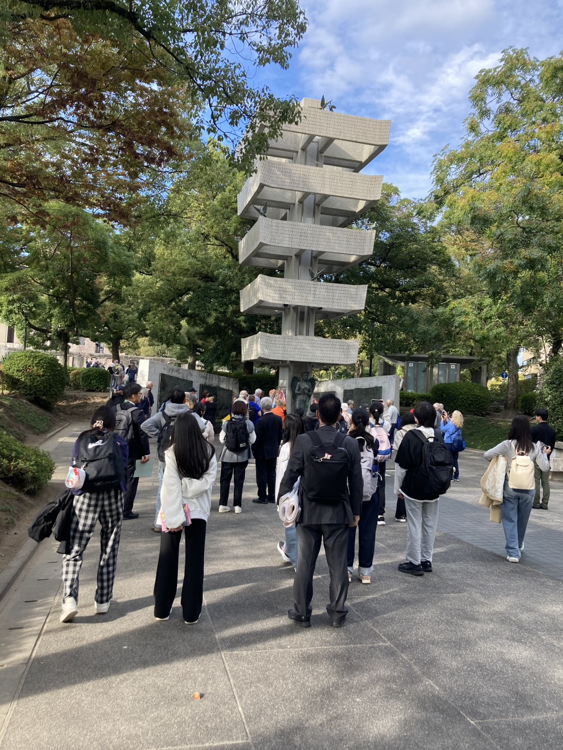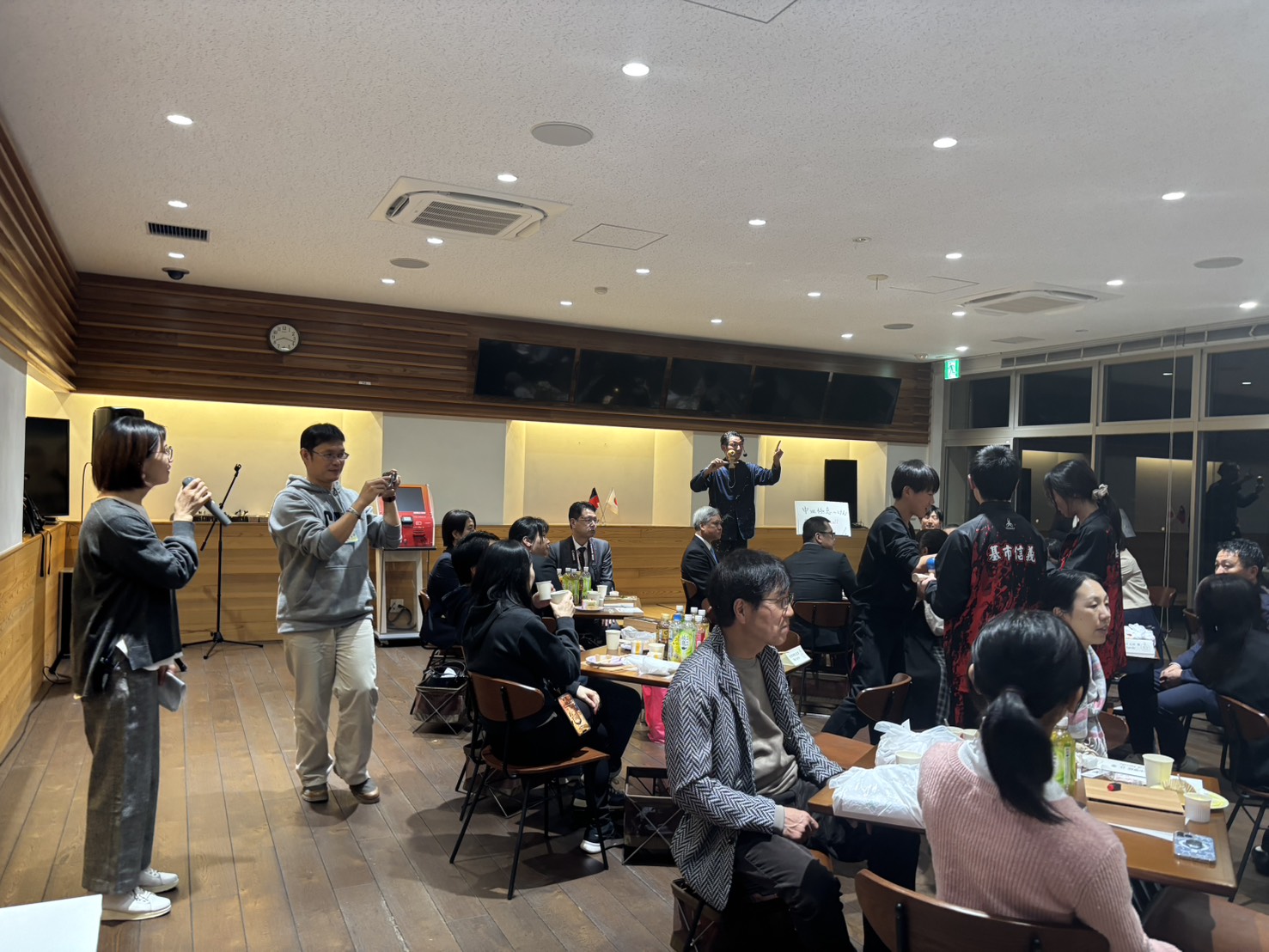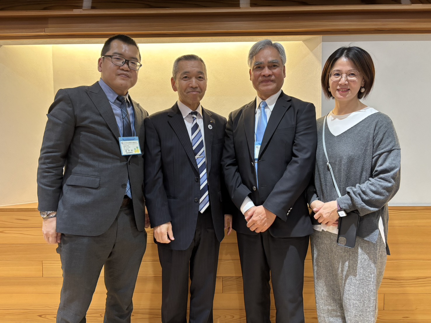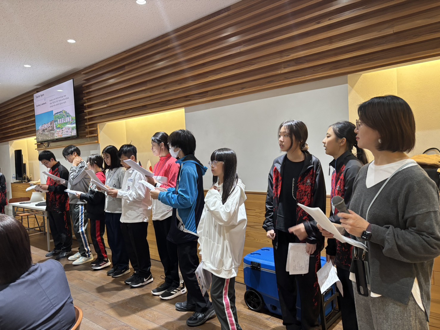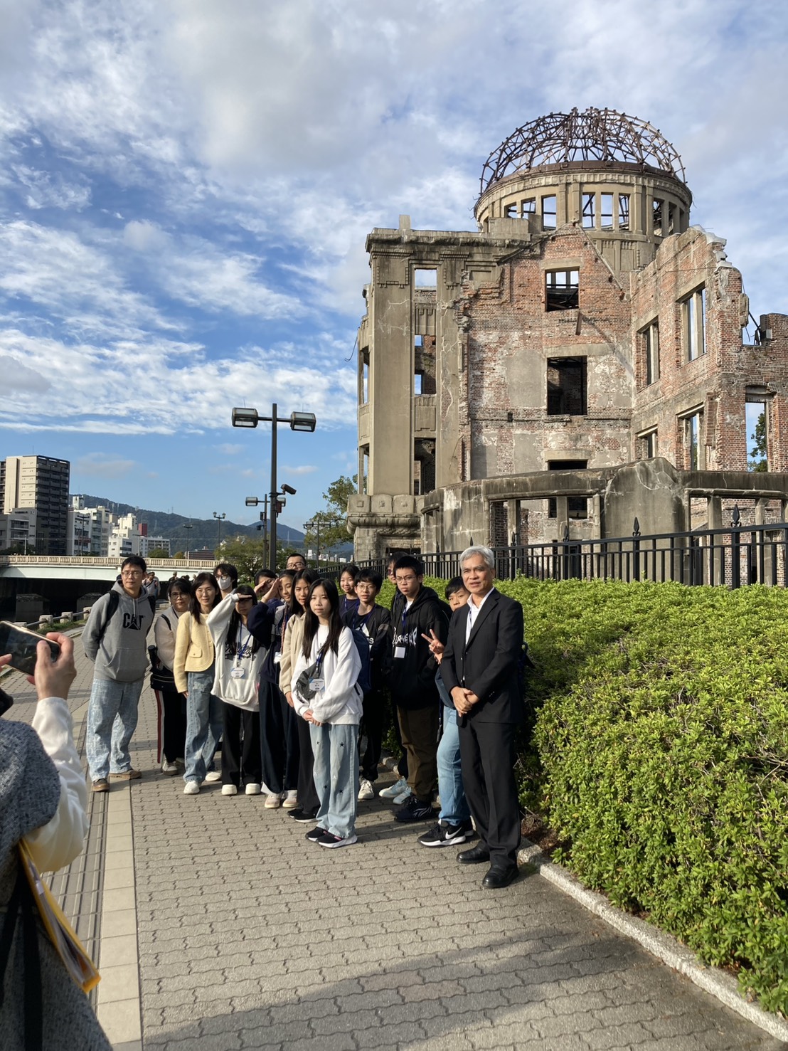令和7年度 廿日市市・台湾基隆市国際交流来日交流 の通訳で大活躍 11月5日~11月9日、台湾基隆市より引率教員と中学生が来日し、廿日市市内の中学生と交流するプログラムが行われました。廿日市市国際交流協会からは中国語通訳1名がイベント内で、活躍しました。 平和記念公園 11月5日(水)廿日市には午後到着され、平和公園、資料館の訪問をしました。通訳として一緒に中国語で案内し行動を共にし、写真を撮るなど楽しく交流しました。 歓迎レセプション 11月7日(金)歓迎レセプションでは、進行に応じて通訳は会場内で大活躍しました。 神楽やけん玉、基隆市の紹介やクイズなど、食事を楽しみながら言葉を超えた交流が繰り広げられました。 基隆市から来られたは黄校長先生(一番左)張校長先生(左から3番目)と記念撮影。 廿日市市内の中学生がけん玉を教えて、一緒に楽しみました。 基隆市の紹介とクイズ、楽しく盛り上がり笑顔が拡がりました。