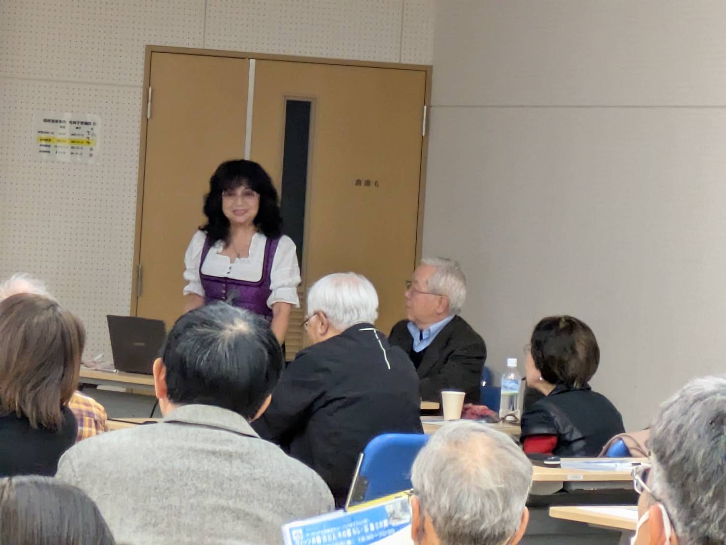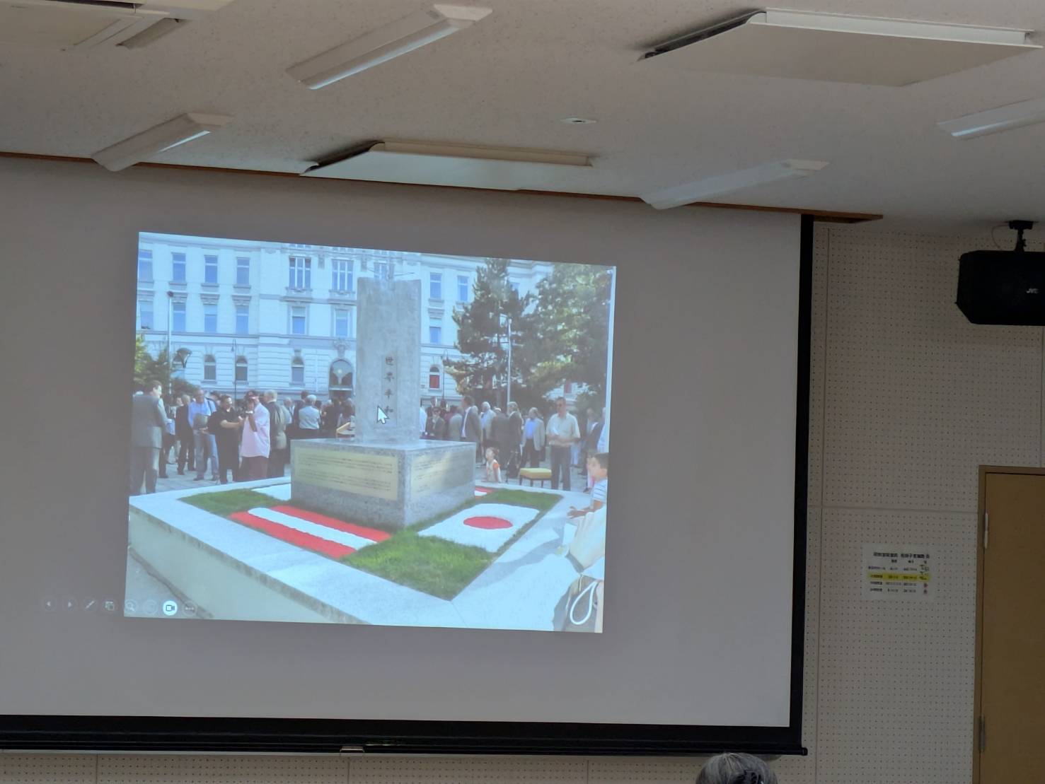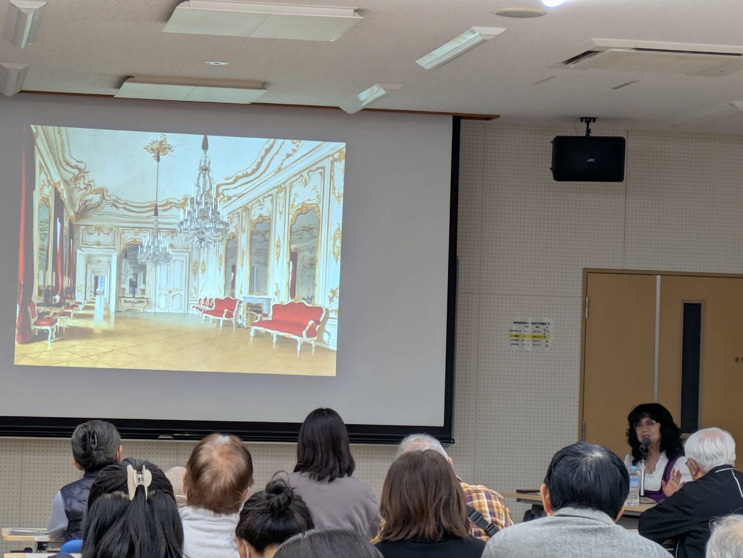 11月28日、広島出身でウィーン在住のイップ常子さんが来日されるのに併せて、ウィーンの魅力について語っていただく講演会が開催されました。イップさんはウィーンのドレス姿で美しく鮮やかに登場され、観光ガイドも務められる知識はとても豊富で、次々とオーストリアの魅力ある風景を映し出され、歴史的背景や見どころ、裏話まで教えてくださいました。