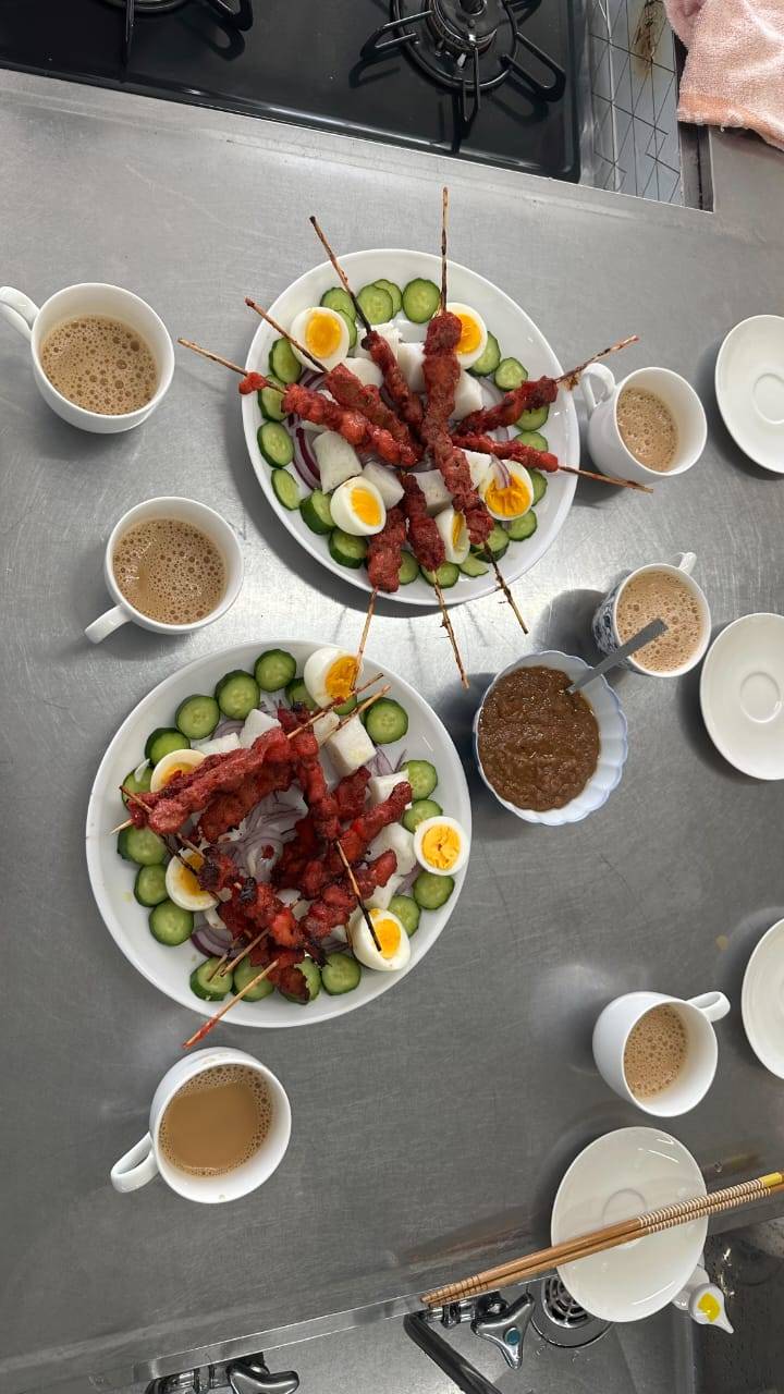 メニューは、SATAY (Grilled chicken skewers)、NASI IMPIT (Compressed rice)、Fresh Salad、TEH TARIK (Pulled tea beverage)、PEANUT SAUCE