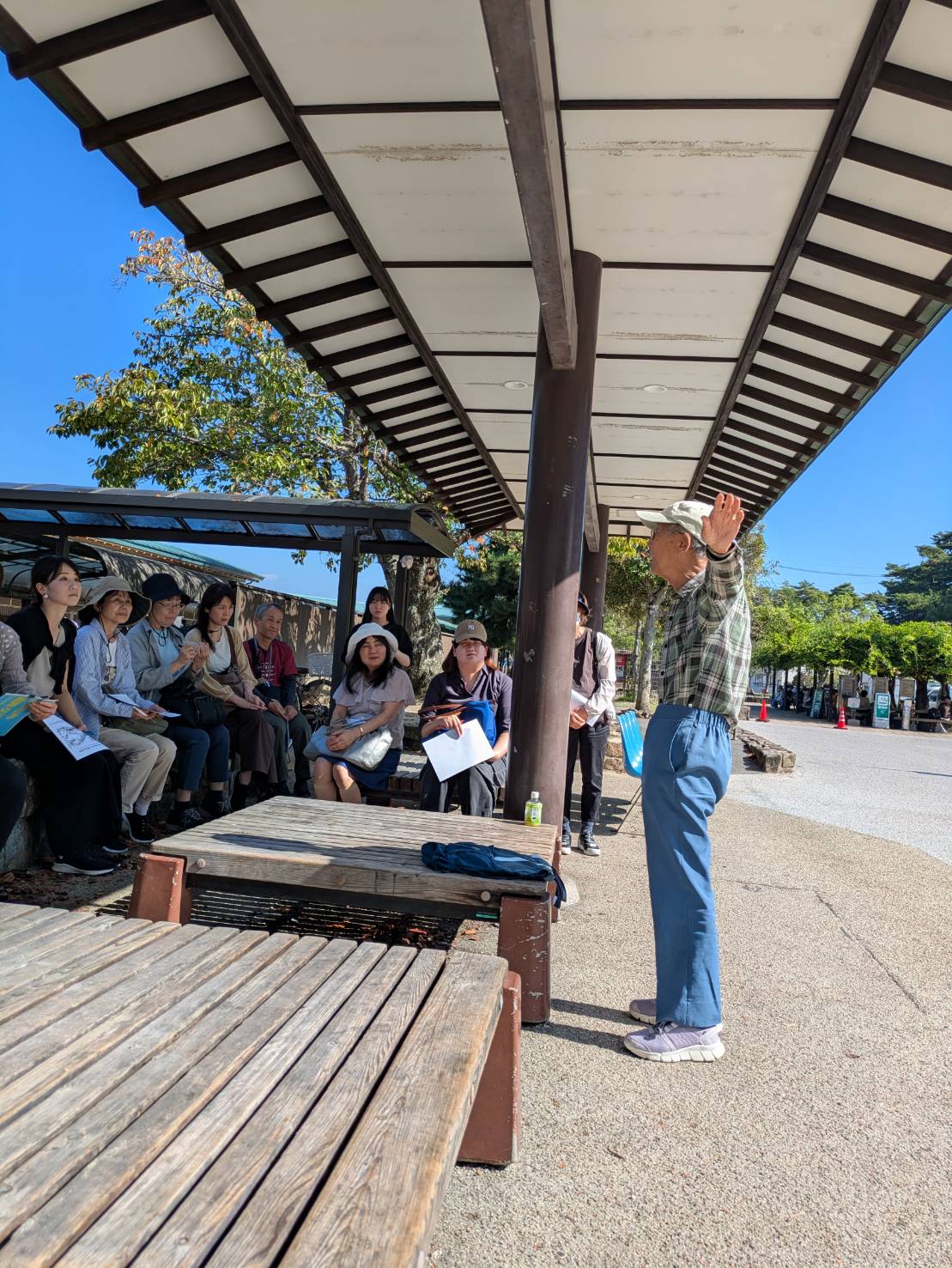 10月11日(土) 第3回英語で宮島ガイド講座に19名の方が参加されました。春、秋の開催で今回は第3回目となります。連続3回目の参加の方、初めての方、見学を希望など様々ですが、自分の言葉でやってみると良いですよ、まあ和やかにいきましょう、と説明があり、晴天のもとで笑顔のスタートでした。