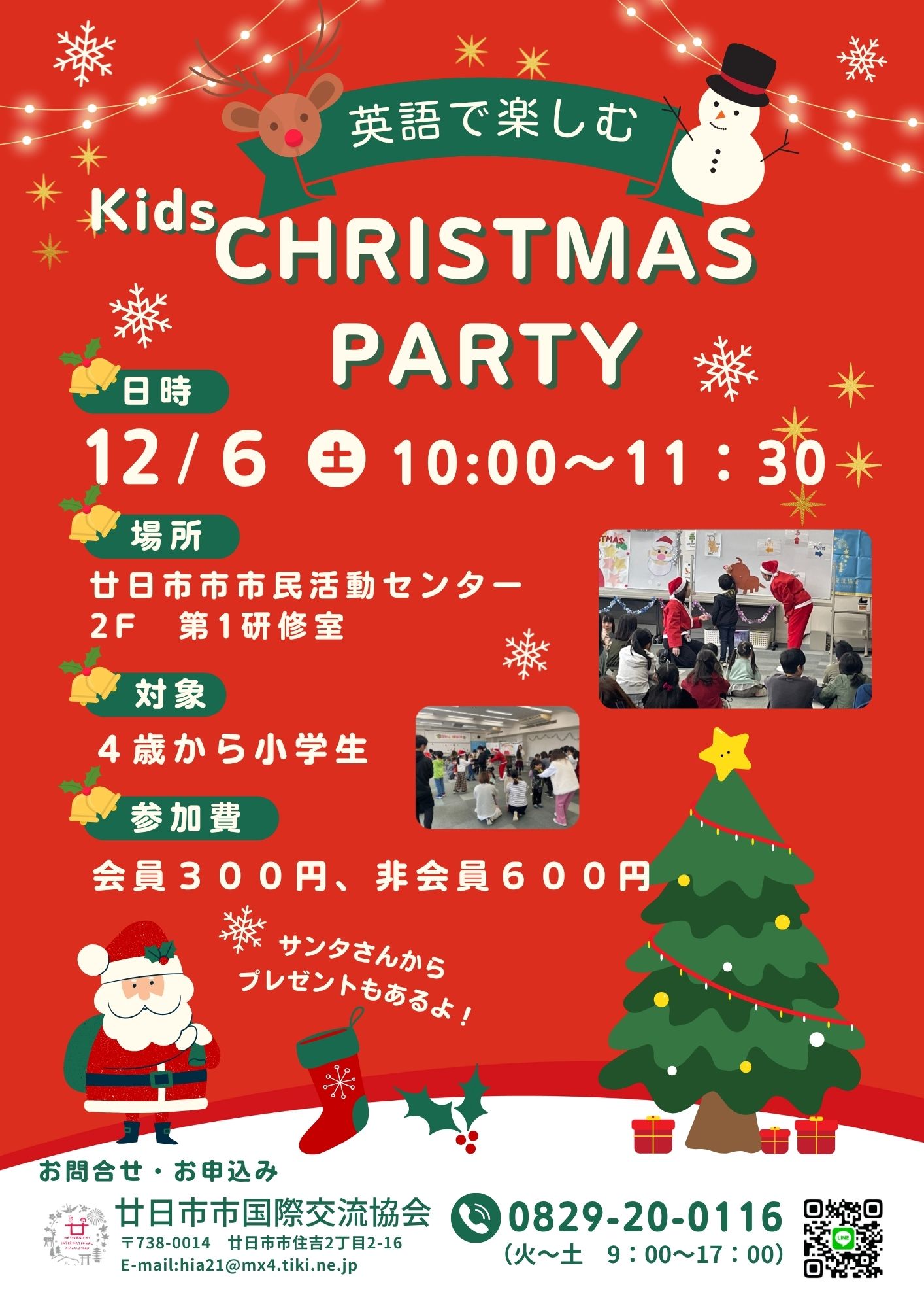 キッズクリスマスパーティーを開催します♪「子ども英会話・はつかいちKids’Club」の人気講師!